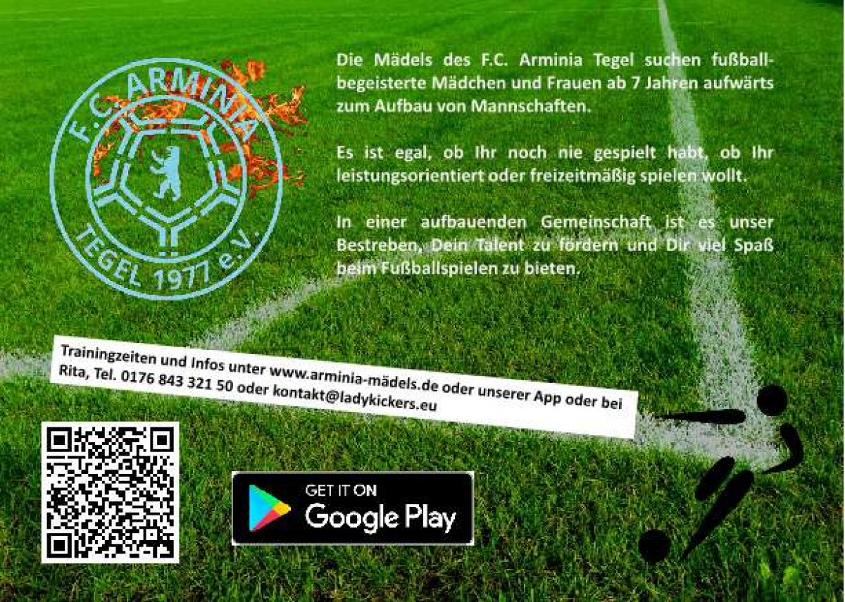 Wir sind eine Gruppe von engagierten und idealistischen Menschen, die bei dem Verein FC Arminia Tegel 77 e.V. versuchen, mehr oder weniger aus dem Nichts eine Abteilung für fußballbegeisterte Mädchen und Frauen aufzubauen.