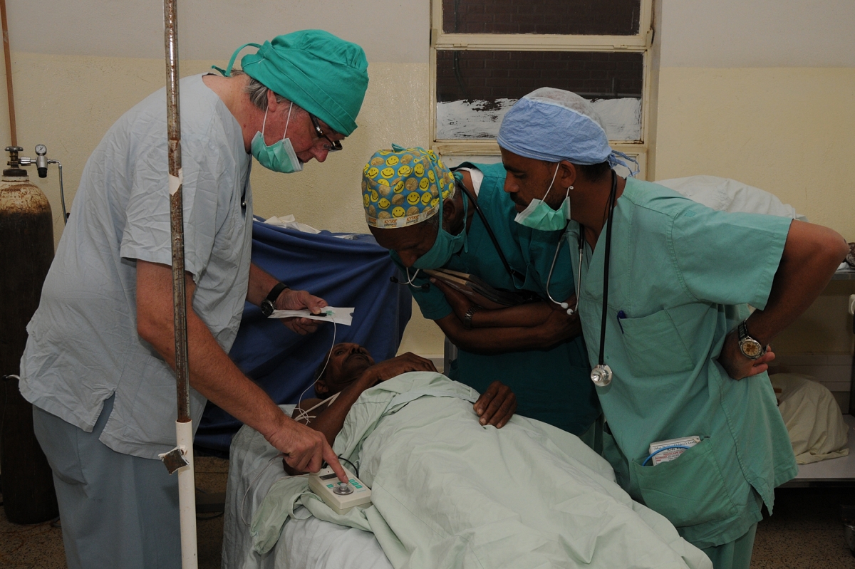 Wir beschaffen Lehrmaterial wie zum Beispiel Simulationspuppen und unterstützen den Einsatz von Anästhesisten, die im Rahmen eines mehrwöchingen Aufenthalts in Eritrea Studenten am College in Theorie und Praxis unterrichten.